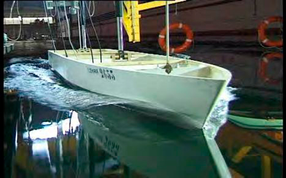 Este cálculo se inicia con la determinación de la resistencia al avance del casco para distintas velocidades de la embarcación, para lo cual se pueden utilizar modelos paramétricos, matemáticos o físicos. A continuación se presentan imágenes de un modelo matemático (CFD) y de un modelo físico ensayado en un canal de pruebas, con estos resultados y la simulación de un propulsor se determina la potencia necesaria del motor propulsor.